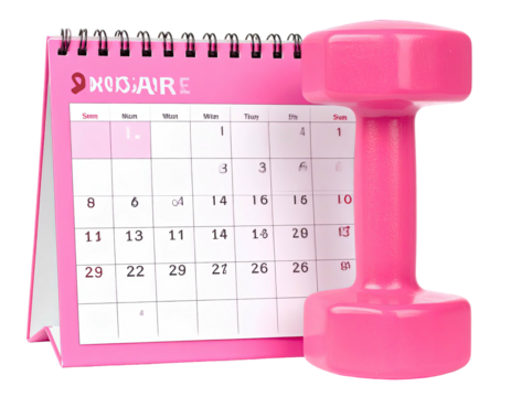 Pink dumbbell next to a pink calendar showing month of November