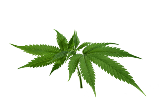 Cannabis (or hemp or marijuana) green fresh leaf isolated on transparent background, png file