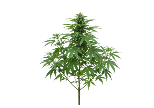 Meticulously arranged premium dried cannabis buds, vibrant green with red pistils and white trichomes, on a transparent background with reflection and copy space. High-end product display
