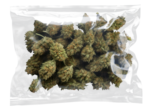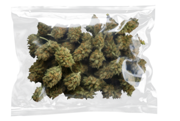 PNG  Cannabis in plastic bag plant food black background.