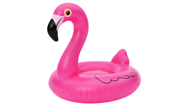 Isolated inflatable yellow duck raft, swimming pool float, fun summertime toy for children