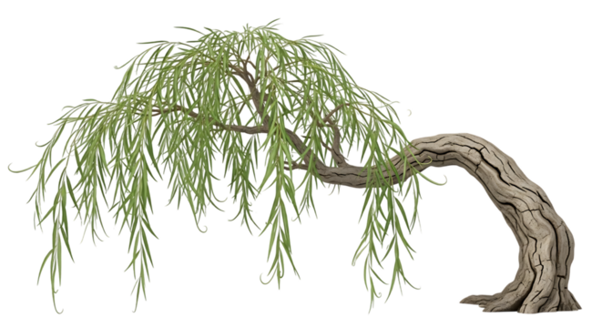 A weeping willow tree on a white background