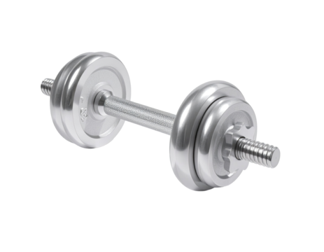 Dumbbell featuring removable black weight plates and a silver handle, offering a versatile tool for home and gym fitness workouts. Transparent background