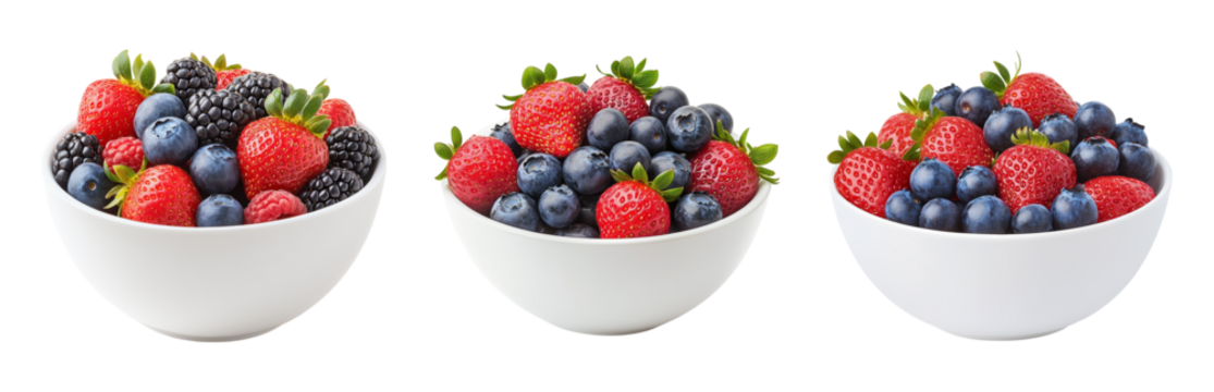 Fresh Berries in White Bowls on Isolated  Isolated on transparent background