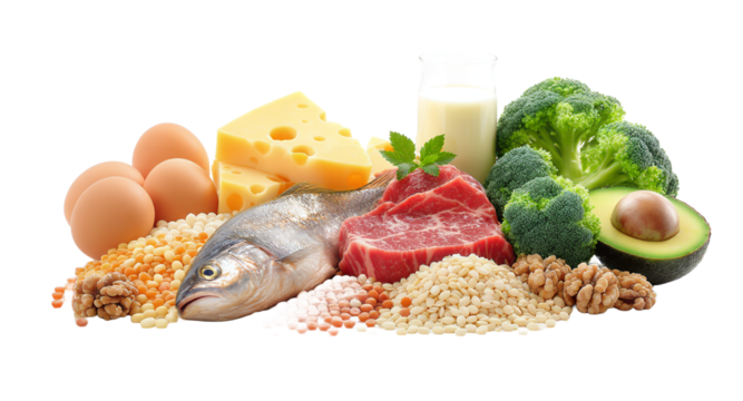 Weight management concept with healthy foods and simple scale on transparent background