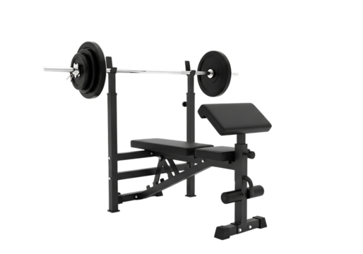 Weight bench gym equipment squat rack barbell fitness station metal exercise workout strength training photo realistic