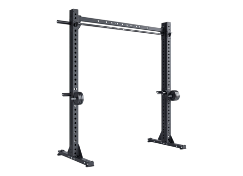 A Steel Sanctuary For Strength Training: A Power Rack Prepped For The Day's Workout on a Clear PNG or White Background.