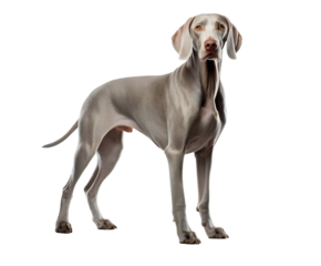 Weimaraner dog standing, isolated on transparent background