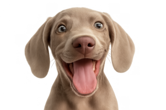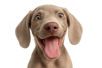 Brown weimaraner young dog is posing. Cute, happy crazy dog headshot smiling isolated on transparent background-generated by ai