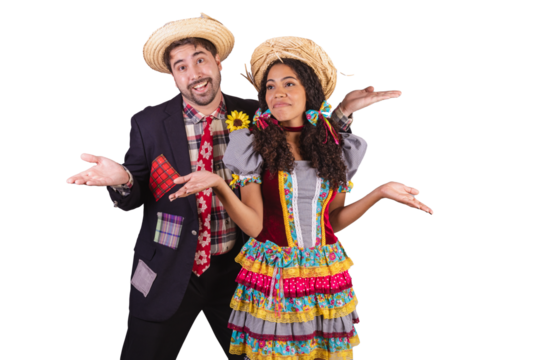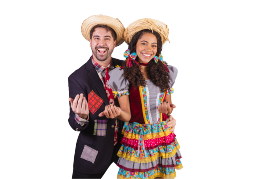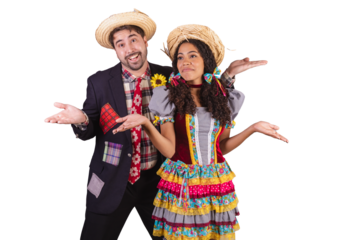 couple, brazilian, wearing clothes from festa junina, fraternization in the name of São João, Arraial. welcome.