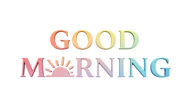 Colorful Good Morning Text with Rainbow Gradient and Stylized Sun Vector Graphic isolated PNG with Transparent Background