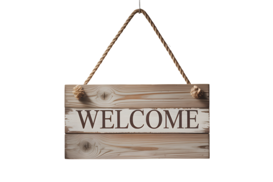 Wooden welcome sign hanging with transparent background