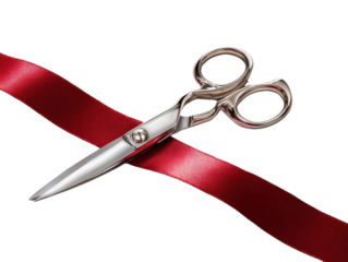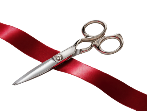 Cutting the Ribbon: Scissors poised, ready to sever a vibrant red ribbon, a symbol of new beginnings and grand openings.