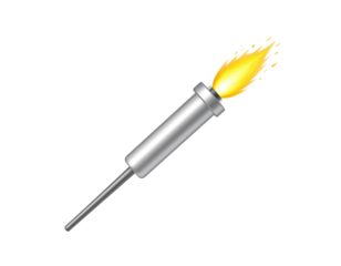 Illustration of a silver soldering iron with a bright yellow flame isolated on transparent background