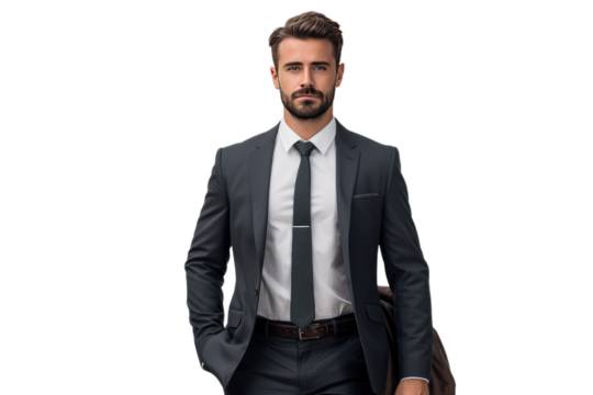 A Man in a Suit and Tie Is Walking. On a White or Clear Surface PNG Transparent Background.