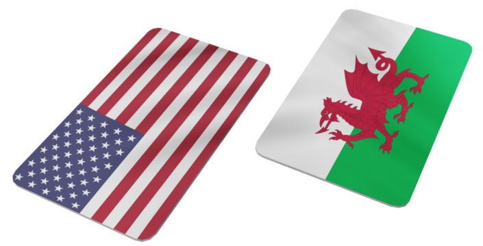 Stylized Digital Flags of the United States of America and Wales Symbolizing International Cooperation