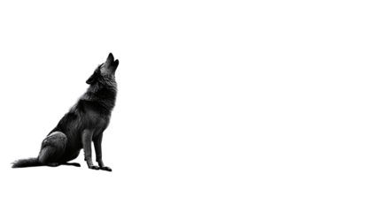 Silhouette of werewolf howling on cliff under moonlight, isolated on transparent background, HD realistic
