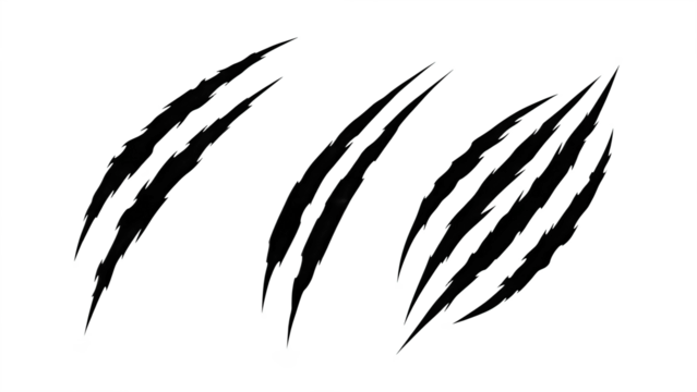 Claw mark vector silhouette set. Claws beast ripped marks.