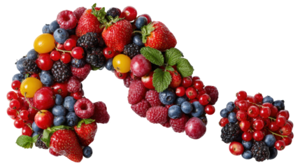 Question mark made of different fruits and berries, fruit alphabet isolated on a white background