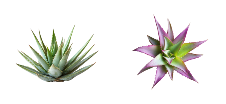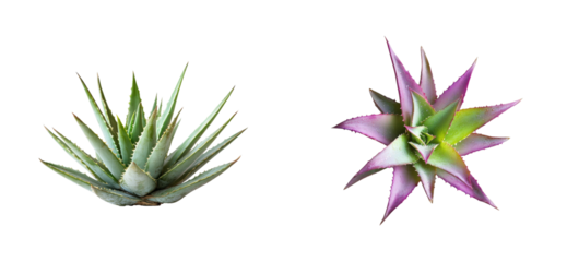 Two succulent plants, wet and spiky isolated, cut out transparent