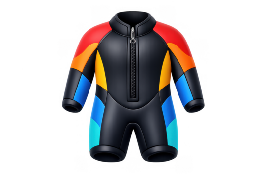 Black wetsuit with teal accents isolated on a transparent background, zipped
