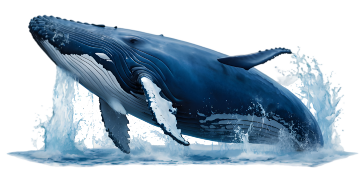 Large humpback whale swimming underwater with transparent background, perfect for marine life projects