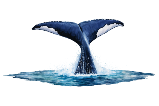 a large humpback whale in the ocean on a transparent background, PNG image, PNG file, Generative art.