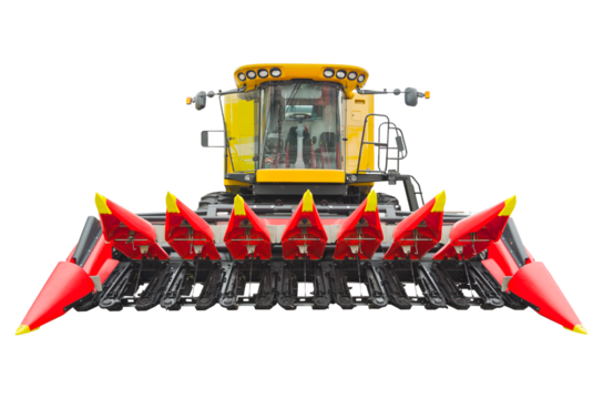 Modern agricultural combine, front view