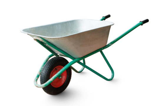 construction wheelbarrow, garden wheelbarrow isolated from background
