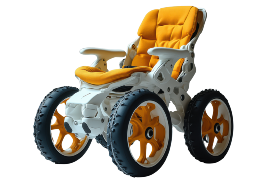 Innovative advanced wheelchair design enhancing mobility modern workshop product showcase indoor environment close-up view high fidelity isolated on transparent background png