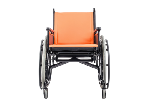 Comfortable orange wheelchair for mobility needs, cut out