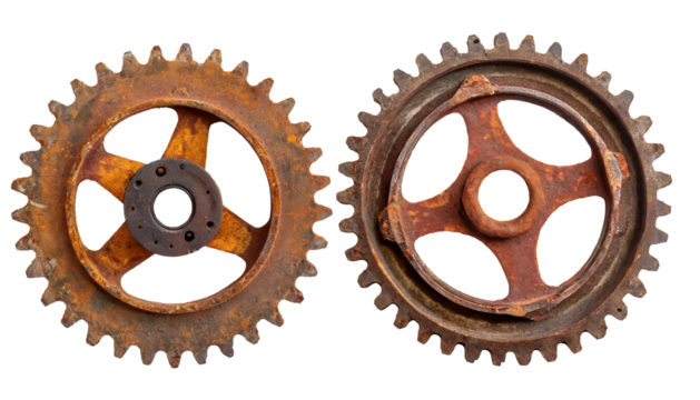 Realistic transparent golden gear wheel, 3d render precision engineering