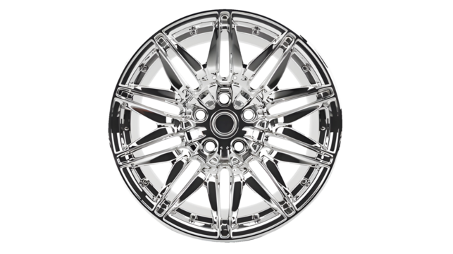 Wheel alloy car wheels rim silver chrome luxury or Mag Wheel high performance auto part decoration isolated on cut out PNG or transparent background Transport vehicles transportation.