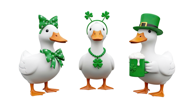 St. Patrick's Day Ducks with Shamrocks and Beer