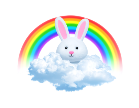 Rainbow Cloud Rabbit Character Illustration