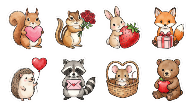 Whimsical cartoon bunny with wildflower bouquet, transparent background