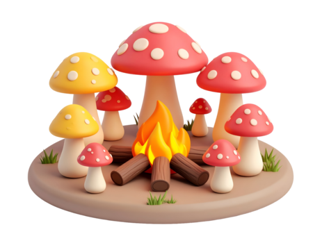 Transparent botanical illustration of whimsical orange-spotted mushrooms