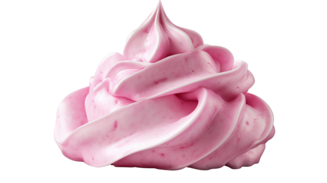Delicious pink whipped cream isolated on white background