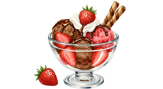 3D strawberry shortcake protein shake in bottle with whipped topping illustration and dessert bar branding, isolated on transparent background with no shadow