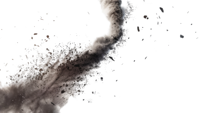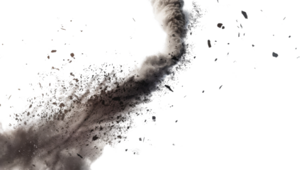 Dust devil spins, a small whirlwind of dust and debris isolate on transparent background