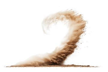 The dust devil spins, a small whirlwind of dust and debris isolated on white and transparent a background.
