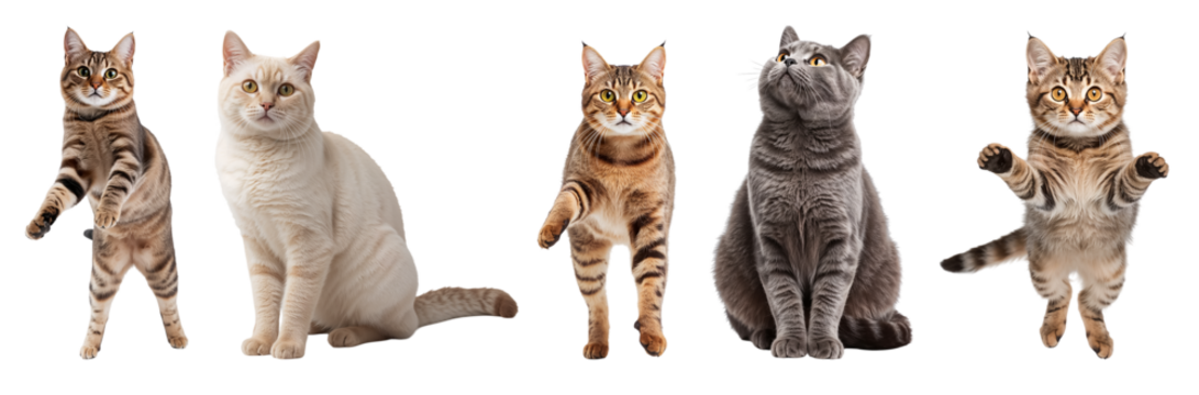 A cute British Shorthair cat in different poses isolated on a transparent background