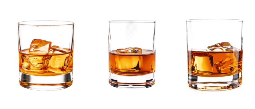Three glasses of liquor with ice cubes in them Set of png elements.