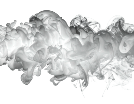 Dramatic smoke swirls isolated on transparent background create a dynamic abstract composition with intricate patterns and captivating visual texture
