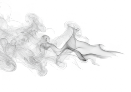 Wispy gray smoke gracefully dances and curls against an isolated on transparent background, creating an ethereal and abstract visual effect