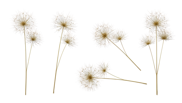 Dandelion Seeds Vector Set Delicate Whisps  Golden Brown Stems, Isolated on White