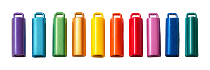 Collection set of colorful plastic whistles isolated on transparent or white background, png