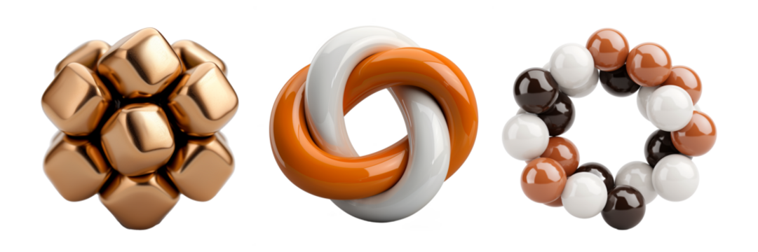 Modern Abstract 3D Icons Collection. PNG transparency. Isolated on transparent background