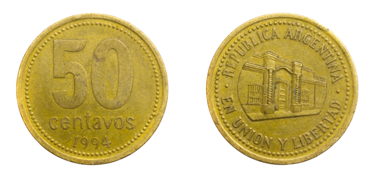 Argentina fifty centavos coin on a white isolated background
