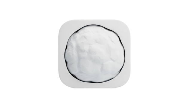3D Abstract white powder in a rounded square container on transparent background